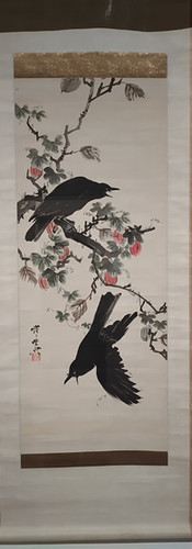 日本人ってなんで動物描くの好きなんだろうねぇ。流れは鳥獣戯画から始まったとは思うんだけど。お伽のジャンル良いですよねぇ。私大好きです。日本人の「可愛い好き」はこういう所にも表れてると思うんですよね…。あと、日本人がアニメーションを描くのが上手い歴史ってのもこういう所からあると思うんですよ。動きの中の一部を切り取るのがほんと上手い。写真の無い時代(あ。暁斎は江戸末期から明治初期の人だから、写真が無い…って訳ではないですが。)カラスの絵とかこの一瞬を切り取る目は凄いですよ。狩野派の一派なんだそうで、自然を描画する所から野生の動物を描くことを学んだんですかねぇ…。